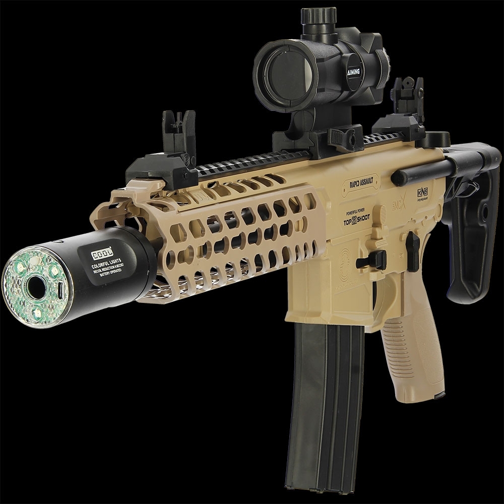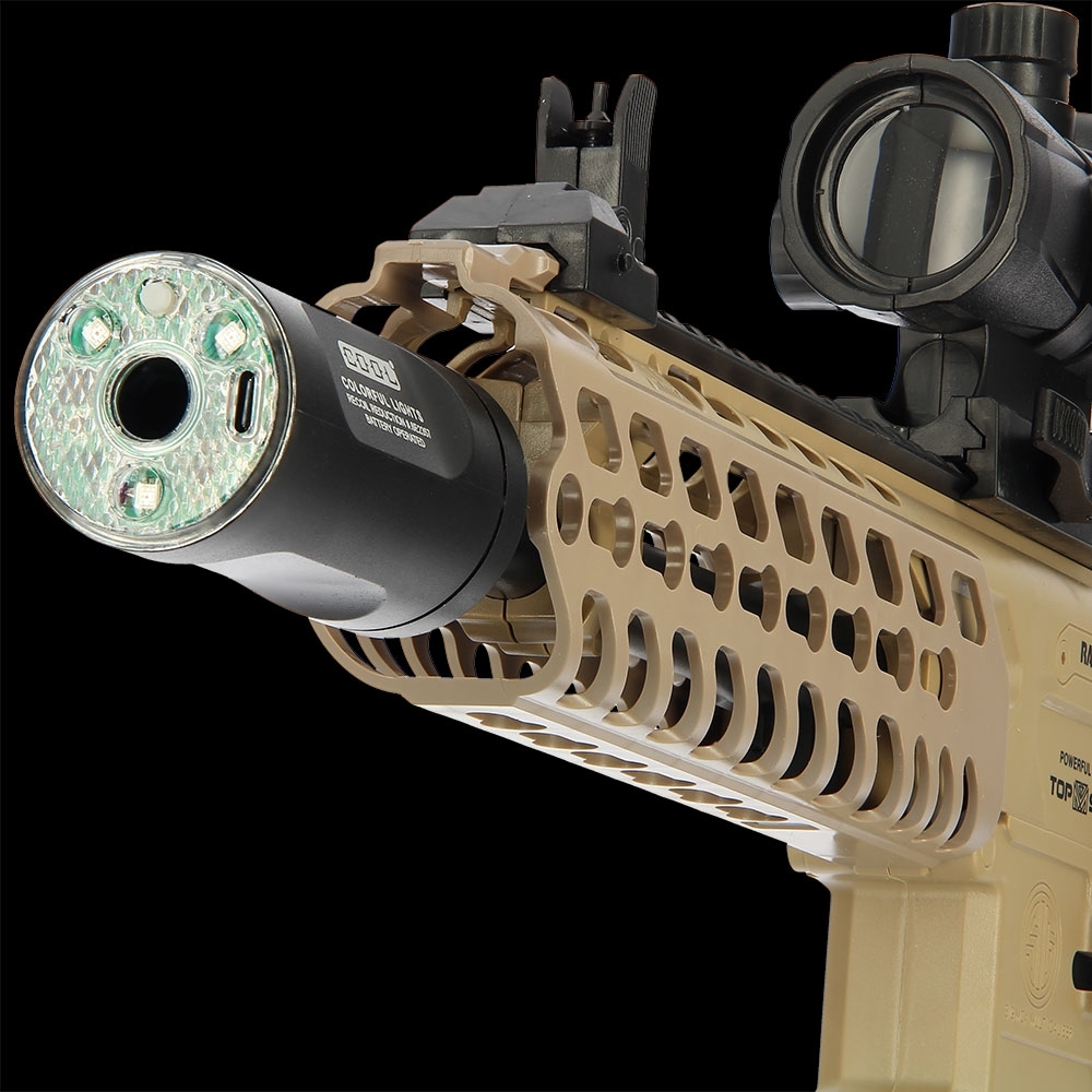 The MCX Youth Edition features three selectable firing modes—single shot, three-round burst, and fully automatic—so you can adapt your playstyle to every encounter. Its 7-colour lighted silencer flashes bright RGB hues with each shot, while built-in sound and vibration feedback enhance immersion. Firing soft, non-toxic gel balls safely up to 20 meters, this model balances performance with safety, making it perfect for friendly back garden skirmishes or organised games.