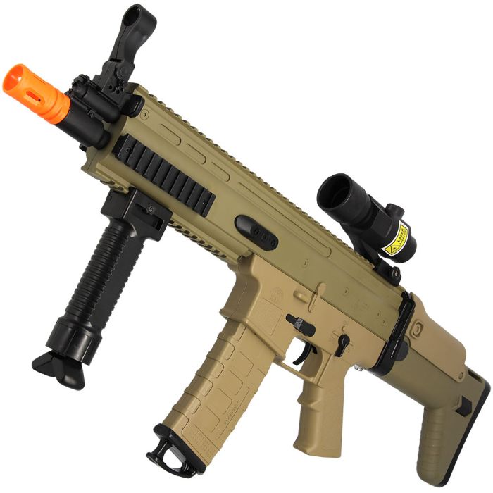 The SCAR rifle has a host of features including an ABS body and a nylon gearbox housing and internals, plus a range of accessories including a bipod foregrip. The SCAR has a performance V8 AEG style hard nylon gearbox and is powered by a 7.4V Li-on rechargeable battery and each rifle includes a USB charging cable.