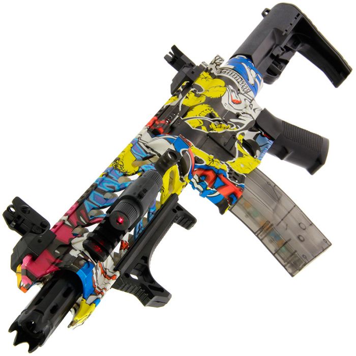 The GelSoft Shark is supplied with 3000 rounds of ammo, a mixing bottle, fillport magazine, laser sight, foregrip, sights, safety glasses, USB charger and battery pack. The GelSoft Shark is simple to assemble and does not require any tools.
