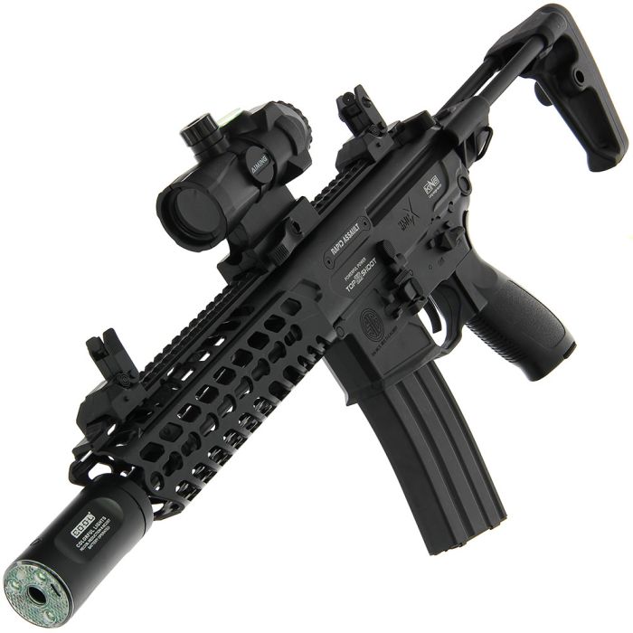 Built for durability and precision, the MCX features high-quality nylon construction from tip to stock, reinforced with solid metal rods and a V2 nylon gearbox housing. Its metal 18:1 gear ratio, solid rubber stock butt, and well-balanced heavy design make it both reliable and comfortable to handle, even during extended battles.