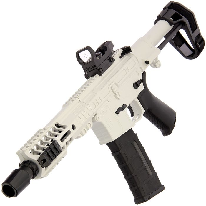 The SLR Gel Blaster combines speed, reliability, and eco-friendly fun. Featuring a 240 RPM fire rate, 250-round electric magazine, automatic blowback, and prime function, it delivers nonstop action. Built from durable ABS and powered by a rechargeable 7.4v battery, this full-auto blaster comes complete with gel balls, safety glasses, green dot sight, and everything you need to start playing right away.